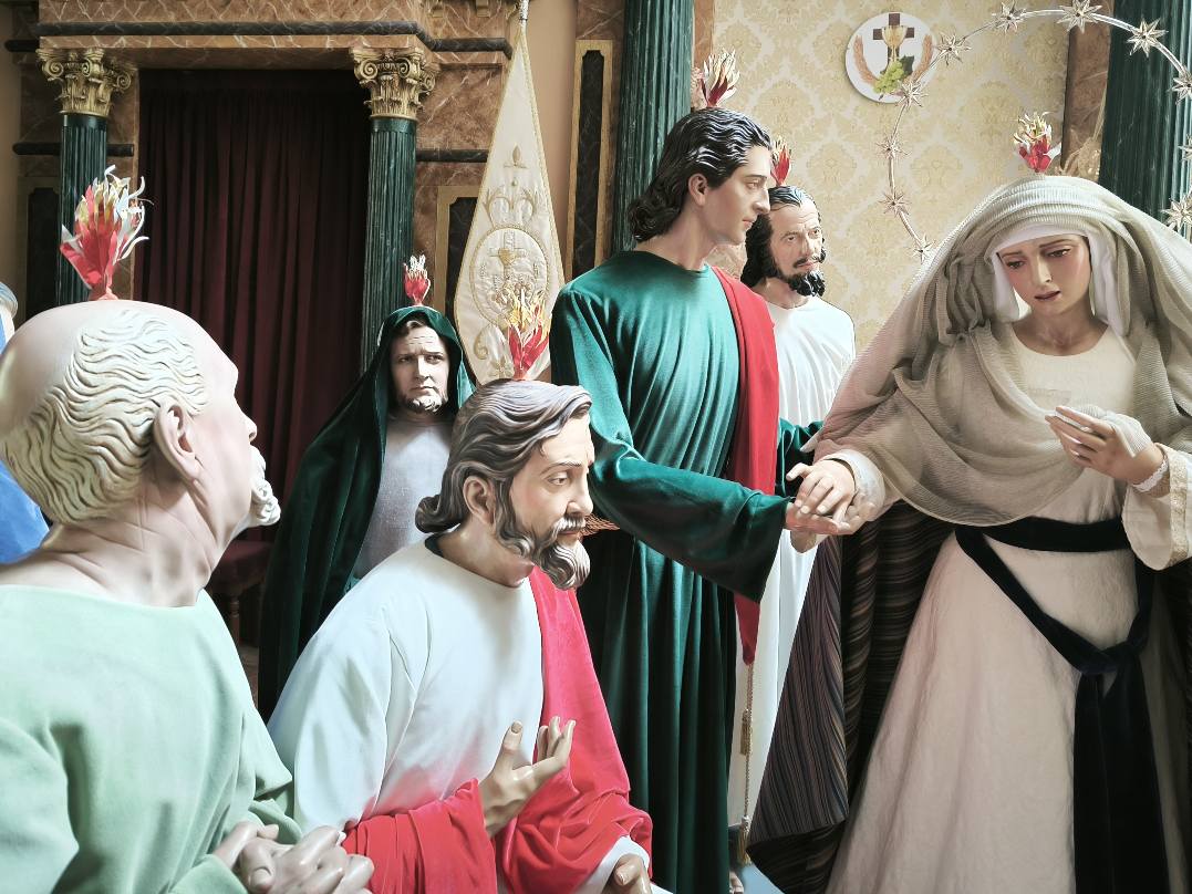 La iniciamos el domingo procesionando a Jesús del Amor por las calles de nuestra feligresía a los sones de la AM Oliva de Mérida envuelto en fragancias de romero y acompañado por la comunidad parroquial de la que nos sentimos formar parte. El recorrido procesional, nuestro «Corpus Chico», lo finalizamos con la celebración de la misa dominical tras la cual trasladamos a Jesús del Amor de su paso procesional al altar de culto dispuesto en el presbiterio de la Iglesia. Durante esta semana Nuestra Señora del Patrocinio ha permanecido en el cenáculo acompañada por los apóstoles, donde el domingo pasado recibieron la venida del Espíritu Santo en la solemnidad de Pentecosté.