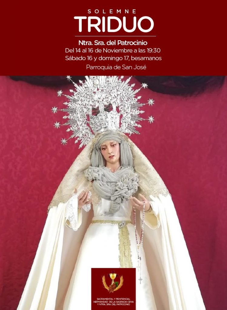 Los días 14 al 16 de noviembre se celebra en la Parroquia San José el triduo en honor a Nuestra Señora del Patrocinio, Titular de nuestra Hermandad.